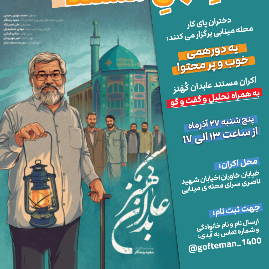 نشست اکران و تحلیل مستند «عابدان کهنز» با حضور اقای یعقوبی و جمعی از نوجوانان در تاریخ۲۷ آذر در مرکز نیکوکاری انصارالشاب برگزار شد.